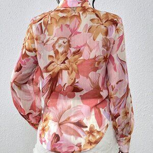 Baby Pink Boho Women's Floral Lantern Long Sleeve Shirt
