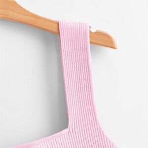 Baby Pink Casual Women's Solid Ribbed Knit Top