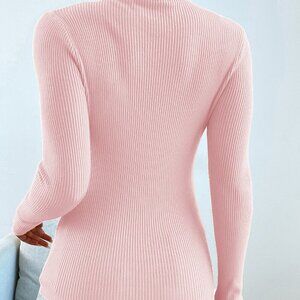 Baby Pink Casual Women's Turtleneck Ribbed Knit Sweater Without Necklace
