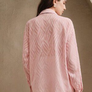 Baby Pink Elegant Women's French Beaded Floral Casual Long Sleeve Sheer Textured