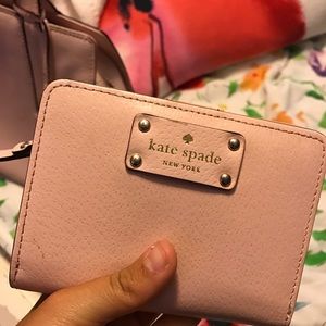 I'm selling a baby pink Kate spade medium sized purse and matching wallet. I'm not a big purse kind of girl, so this is a perfect sized bag for someone who wants to fit more than just a cross body. I've only used it about 5 times since I've got it. The wallet is what i mainly use. Has a small light scrap on the front but nothing too crazy. Has a body string as well to put as a cross body or over the shoulder
