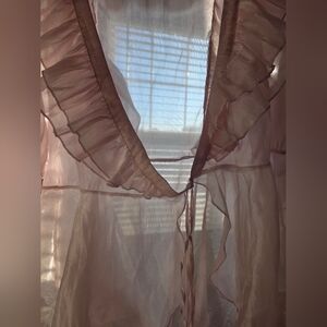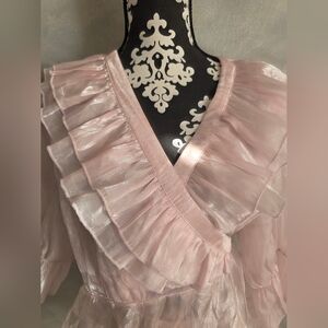 Baby Pink Organza Mesh Sheer Ruffled Mini Dress Top Sz 2X Wo Wo Wrap