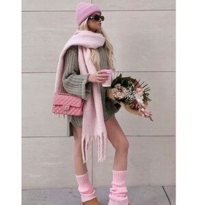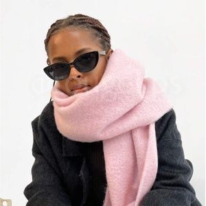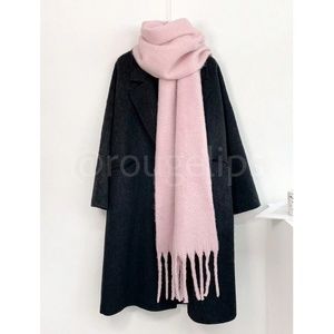 Baby Pink Wide Shawl Scarf With Tassels Fuzzy Knit