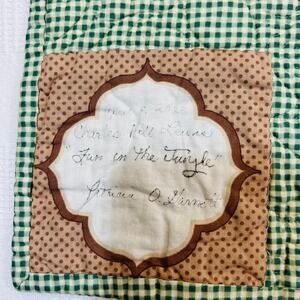 Baby Quilt Jungle Babies Green Brown Yellow 46.5" x 37.5" Green Gingham Backing