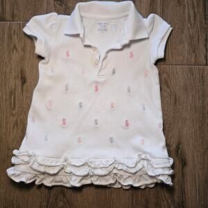 Baby RALPH LAUREN Embroidered White Pastel Pony Ruffled Dress Top 18M