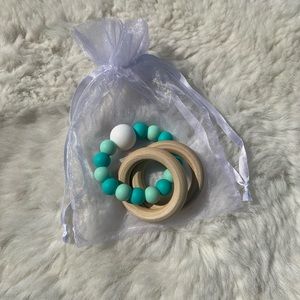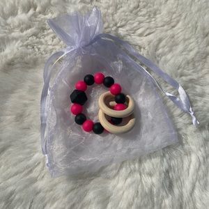 I make them with silicon teething beads, nylon rope, and wooden ring toys!