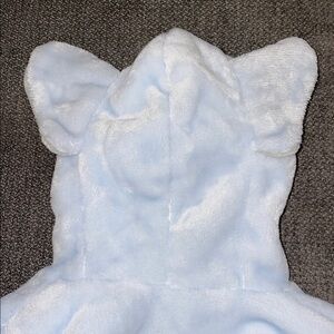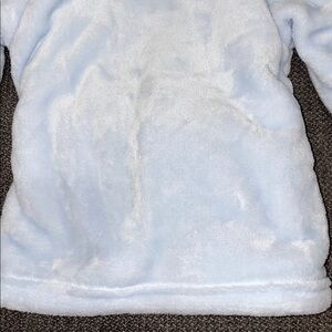 Excellent condition. Never used. Smoke free, pet free home. Plush fabric. 100% polyester. Would be cute for photos, but not realistic for post bath in my opinion. Super soft!