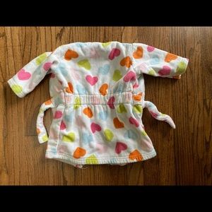 We’ll loved robe. Fits 0-9 months but seems to run small. Super cute with hearts!