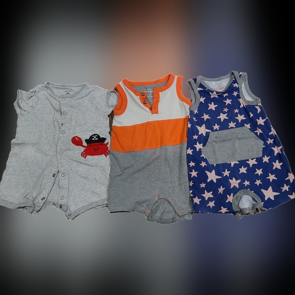 6-9m rompers Cat and Jack. gray one is 6m from Carter's