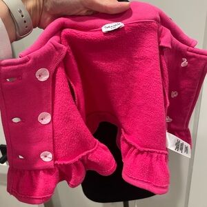 Good condition. Pink coat with ruffles and buttons. Slightly faded from was but still adorable.