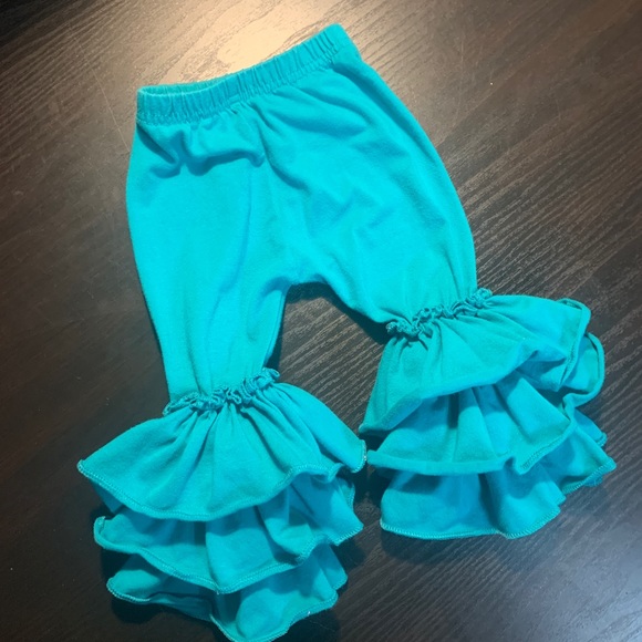 Turquoise 3 layer ruffle pants.