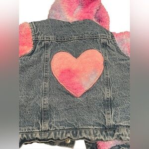 Baby Sara Pink/Blue Fuzzy Heart Snap Up Hybrid Hooded Jean Jacket Size 4