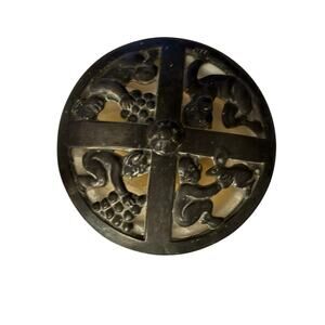 Add a touch of fantasy to your collection with this rare baby satyr figurine. Crafted from bronze and alabaster, this Art Deco bowl features a charming satyr faun holding a cluster of grapes. Measuring 4 inches in length, this small figurine is perfect for adding a mystical touch to any room. Made in Denmark, this original piece is a must-have for any collector of decorative collectibles. Whether you're a fan of fairy tales or simply appreciate the beauty of art deco design, this satyr faun figurine is sure to impress.