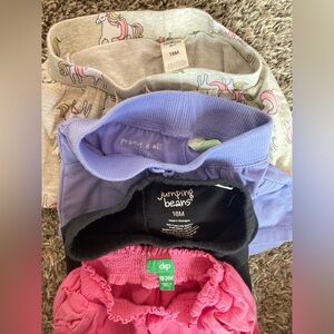 Set of 4 assorted brands 18 months baby girl shorts. The unicorn one is a skirt with inside lining.
