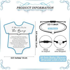 Features: Adorable heart charm bracelet made with lightweight alloy and woven black cords, featuring a classic lobster claw clasp and a sturdy chain. Comes with grateful wish cards that add a heartfelt touch. Great for baby shower favors or gender reveal parties, easy to customize to fit everyone.