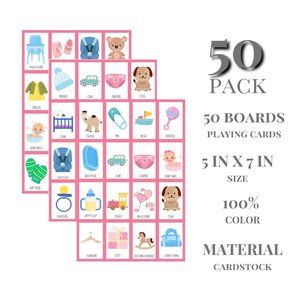 Baby Shower Games - 50 Boards Girl - Baby Gender Reveal Games - Party Favors