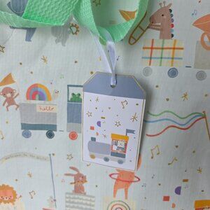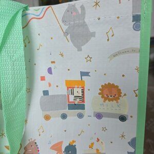 Baby Shower Gift Bag New Shopping Reusable Large Tote Zoo Animals Playing Train