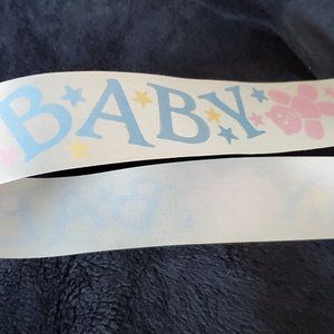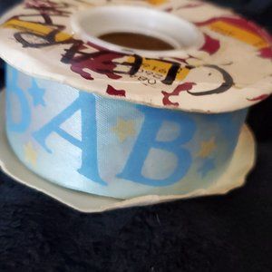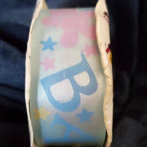 Baby Shower Ribbon by Lion Ribbon Co. Blue and Pink 22 Yards x 1 3/8". Measured and verified. 100% Acetate.