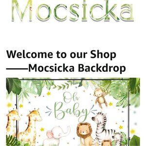 Mocsicka Boy Safari Baby Shower Backdrop Oh Baby Jungle Animals Photography Background Vinyl Zoo Animal Green Leaves Photo Booth Banner Supplies (7x5ft)