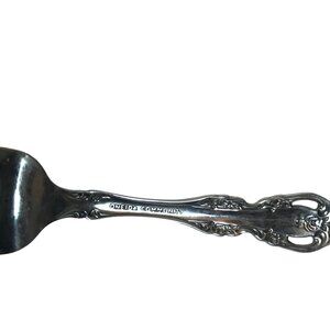Spoon in package is new. Other pieces are pre owned. all Pieces are in excellent condition. The new spoon is silver plate and has tarnished in the package. It needs cleaning.