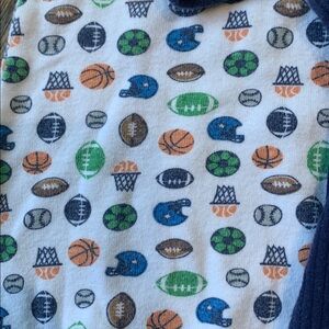 Set of two baby sleep gowns. One in solid blue and one with a sports print. Comfortable and cozy for your little one.