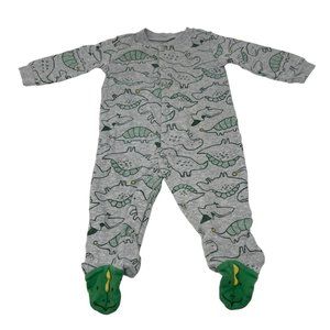 • Grey Sleeper with Green Dinosaur Design and Tiny Dinosaur Feet Snaps Down the Front