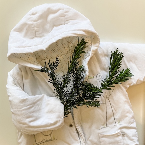 Warm, bought in Europe. For babies 3m. No stains.