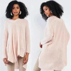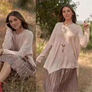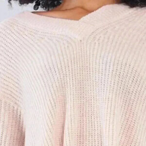 Baby Soft Pink V-Neck Asymmetrical Oversized Long Sleeve Gold Zipper detailed sweater top