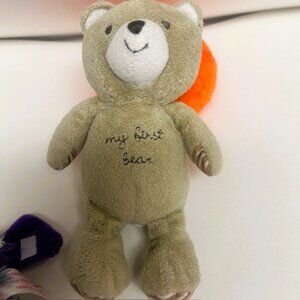 Teddy - 8.5 in Cow - 4.5 in Cone - 4 in Dog / cat - 4.2 in Fish - 5 in. 4 mths plus for these 9 items
