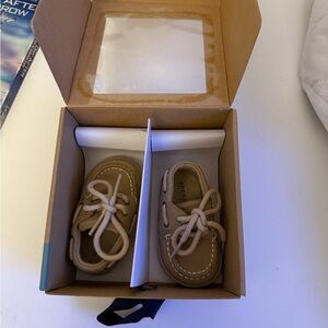 Charming Sperry moccasins for babies. Soft beige color. Ideal for casual wear. Says girls but my boys wore them