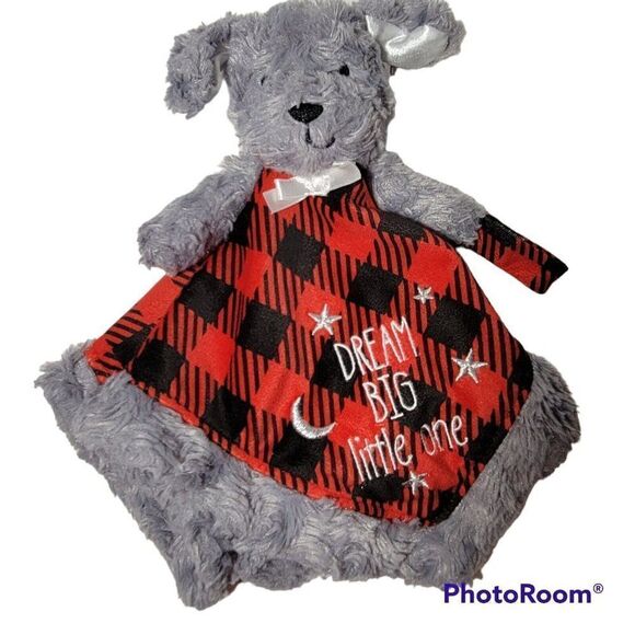 Baby Starters Baby Lovey Security Blanket Rattle Gray Dog Dream Big Little One