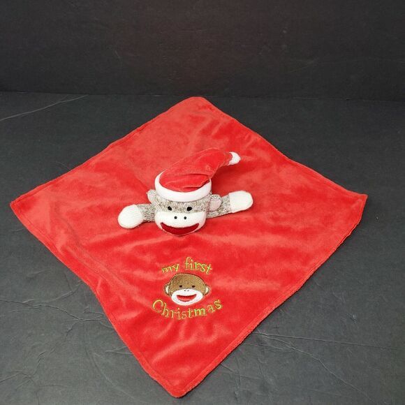 Baby Starters Lovey Sock Monkey My First Christmas Red Brown Security Blanket