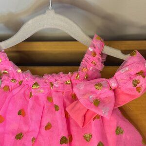 Baby Starters Pink Gold Heart Tulle Dress w/ Bow 6M NWT