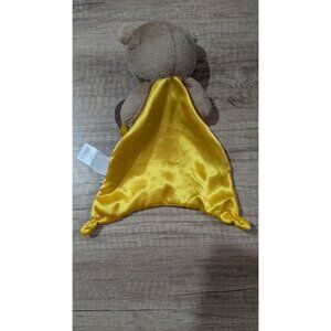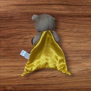A cuddly and comforting plush bear lovey featuring a football and star print front with a soft satin yellow back. Ideal for infants and toddlers.