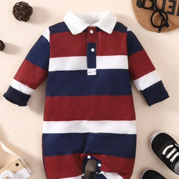 Baby Striped Collared Neck Jumpsuit