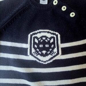 Baby Striped Navy Blue and White Sweater with Button Detail