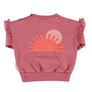 Baby Sweatshirt w/ Frills on Shoulders - Pomegranate with "More Amore" Print