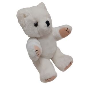 Baby Teddy Bear 8" WHITE Moveable Limbs Realistic Felt Hands Feet Rare Vintage