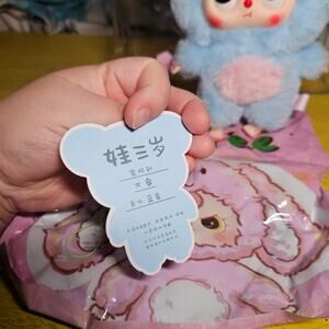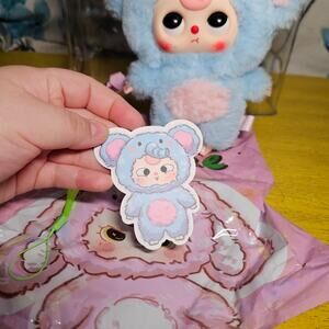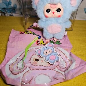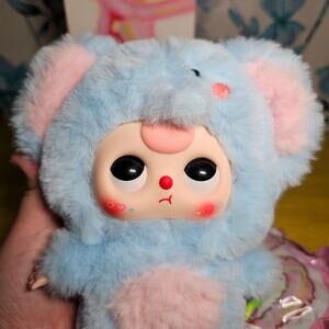 Baby Three Animal Party OPENED Blind Box Plush Pendant Elephant Plush 360 Boba Eyes Pink Hair Pouting Mouth.