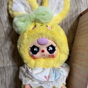 Adorable yellow and white dressed bunny, with special crying eyes eyes!! Perfect to add to your collection