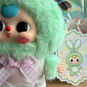 This adorable green bunny plush toy is perfect for kids who love cuddly companions. With its soft fur and cute design, it's sure to become a favorite. The toy features a charming green color with delightful accents.