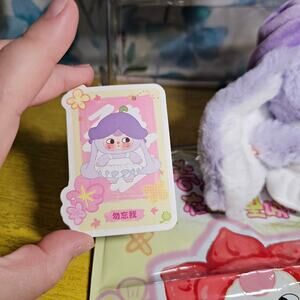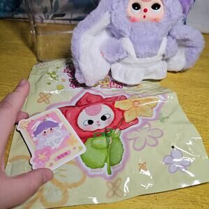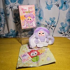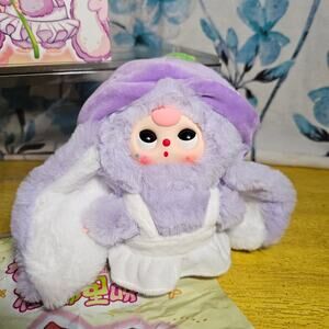 Baby Three Where's Spring OPENED Blind Box Plush Pendant Purple Bunny Rabbit 360 Boba Eyes Pink Hair O Mouth.