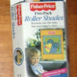 New Rare Fisher Price baby toddler birth & up Car Auto Sun Shade, they screen out the sun not baby's view. Cute character design helps entertain baby or toddler with bright colorful fish and bee designs. They come with clips slip esily over window's edges or use suction cups for more positioning options. Handy relase buttom to roll up shades, sturdy wipe clean vinyl, lower suction cups keeps shade in place, 2 pack includes fun colorful bee and fish designed.
