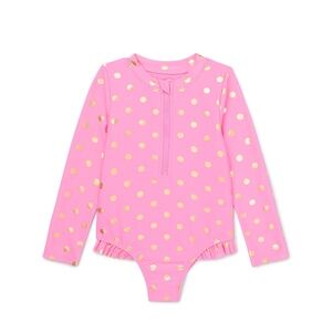 Baby Toddler Girl Zip Rash Guard One-Piece Swimsuit, Size 18M