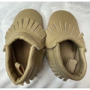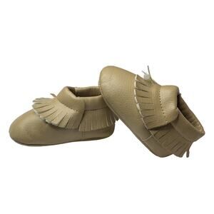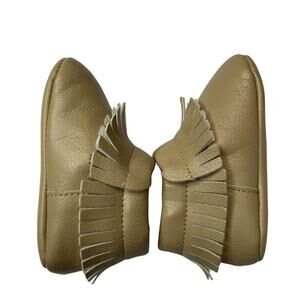 Baby Toddler Infant Girls Size 3 Tan Slip-On Moccasins Crib Shoe Soft Soles Mocs