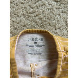 Yellow with pink stripes and pink buttons. 3 month size. Long sleeves.