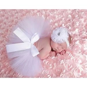 Infant baby tutu set. Has a skirt and headband that match. Skirt is 100% tulle. Headband is made of silk and lace. Perfect for baby announcements, Birthday party or keep for years to come for dress-up and hair accessory!!!