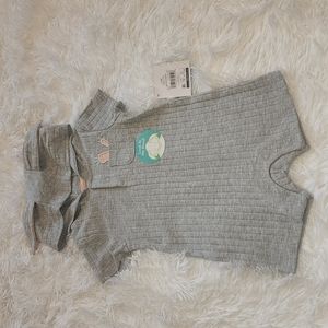 Way to Celebrate baby unisex romper, attached hood with 3D rabbit ears, Heather Gray color.