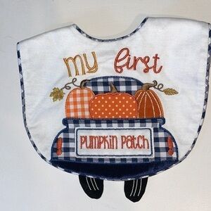 Baby bib my first pumpkin patch embroidered Velcro Thanksgiving fall autumn