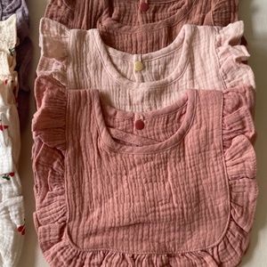 Beautiful baby bibs! These bibs have a ruffle detail with side ties and snap closure! Buy individually or message me for a bundle! Also can sell a large quantity for lower price and you can resale! These are prepackaged for your reselling! This is just my overstock from my Amazon store :) So use for yourself, give as a gift, or buy to re-sale!